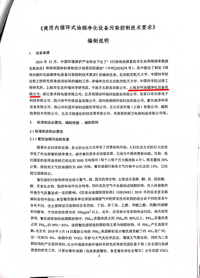 上海多環(huán)油煙凈化設備有限公司很榮幸與中國環(huán)境保護產業(yè)協會的專家教授及行業(yè)大咖們共同參與《商用內循環(huán)式油煙凈化設備污染控制技術要求》編制工作!